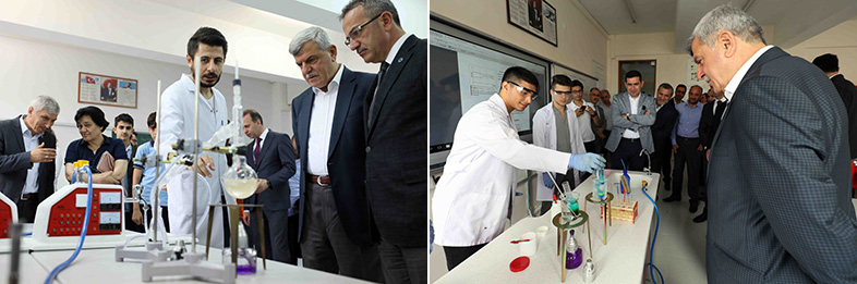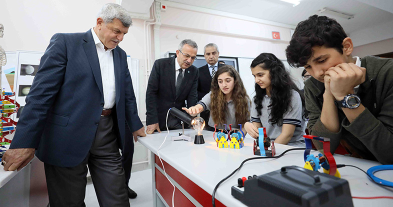 Kocaeli eğitim alanında çok önemli aşamalar kat edildiğini de öğrencilerle ve öğretmenler olan buluşmasında vurgulayan Karaosmanoğlu, “Okul öncesi, ilköğretim ve ortaöğretim kademesindeki okul sayısı Kocaeli’de 497’den 1.268’e yükseldi. Yapılan yatırımlar sayesinde Kocaeli’ne 2017-2018 eğitim ve öğretim yılında spor salonu sayısı 221’e, ilköğretim ve ortaöğretimde bulunan laboratuvar sayısı da 916’ya ve kütüphane sayısı 505’e yükseldi” bilgilerini verdi. Büyükşehir Belediye Başkanı İbrahim Karaosmanoğlu, açılışların ardından öğrencilerin eğitim aldığı laboratuvarları da ziyaret ederek derslere konuk olmayı ihmal etmedi.