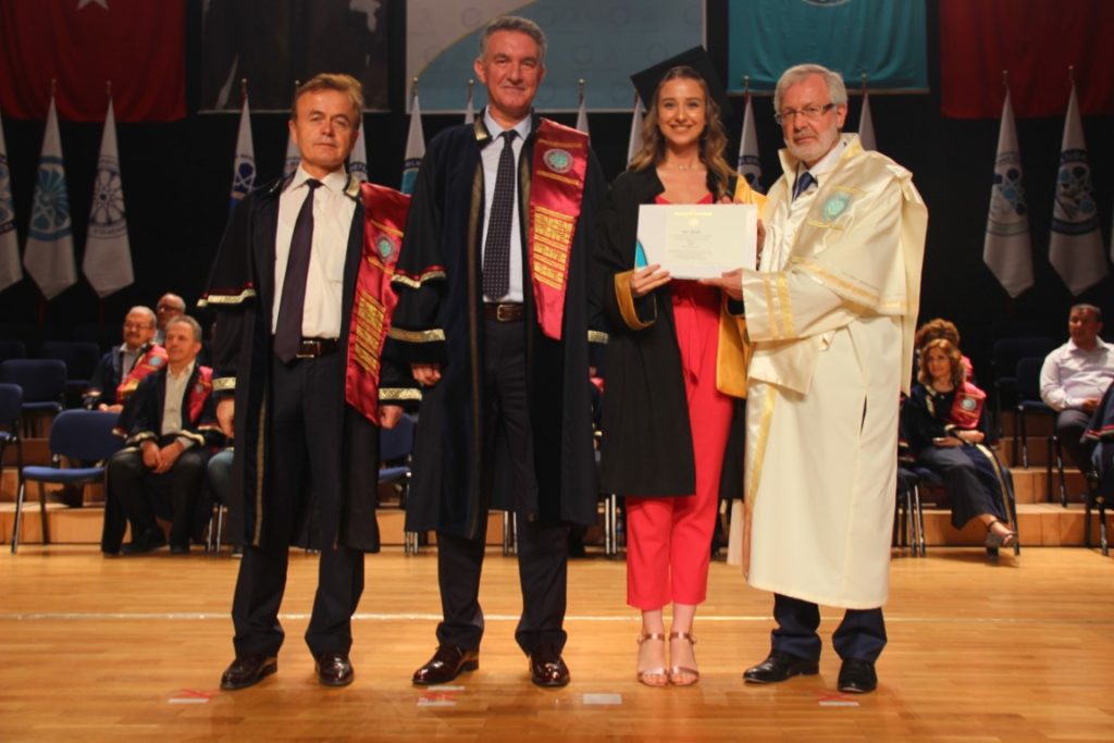 Mete Cengiz Kültür Merkezi’nde gerçekleştirilen törenlerde, doktora ve yüksek lisans diplomasını alan öğrencilerin yanı sıra Fen Edebiyat Fakültesi Kimya bölümünden mezun olan öğrenciler de kep atmanın sevincini yaşadı.